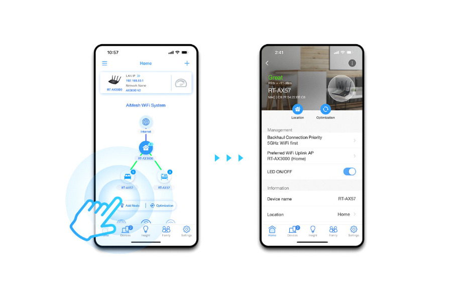 If you’re worried about setting up such a network, don’t be. The ASUS Router mobile app makes it easy. Setup is a breeze, and it gives you easy tools to monitor your network topology. You can effortlessly optimize your home network, such as finding the best location to put your node, and you can manage each connected device with rich features. All with just a few taps on your smartphone.
