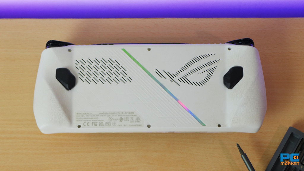 - Make sure that your Ally is turned off before you start disassembling it. The back side is held by six long screws and you can remove it any way you want but the bottom-middle screw is a captive one so don't be surprised if it doesn't come off.