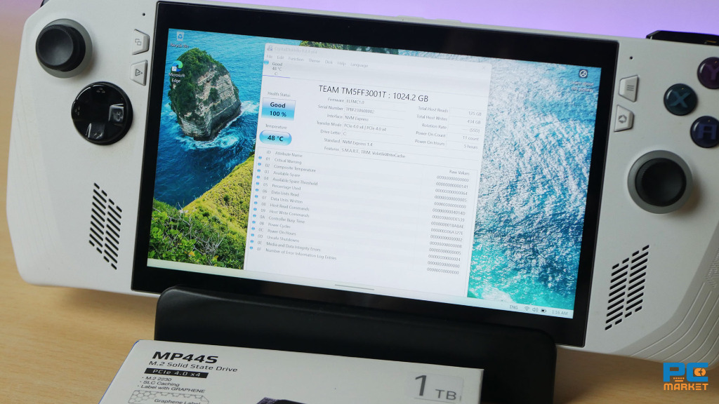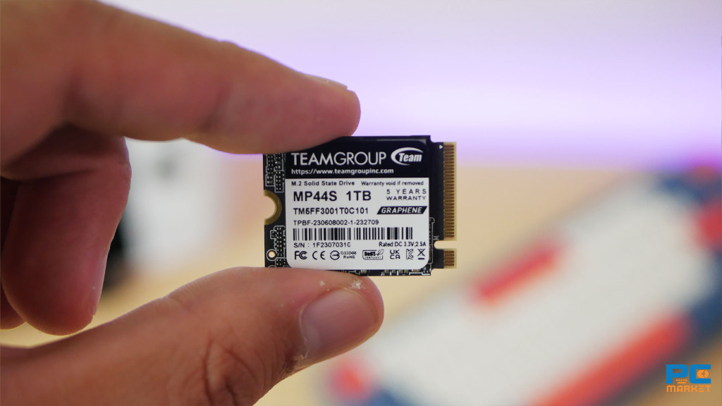 Luckily, upgrading the SSD slot of the ROG Ally is really easy and I would say that most non-tech people would not have any problems doing it themselves. With that said, our friends from TeamGroup actually hooked us up with one of their newer PCIe Gen 4 M.2 drive that fits perfectly to the ROG Ally without doing any modification. The TeamGroup MP44S is a 2230 M.2 drive that is compatible with most handheld device including both Steam Deck and ROG Ally. The one I have here is the 1TB version but a 2TB SSD is also available for those looking for larger storage space. It also comes with a graphene label so it should be able to disperse heat much quicker as compared to other SSDs out there. And finally, its 5-year product warranty offers reassurance to all users out there.