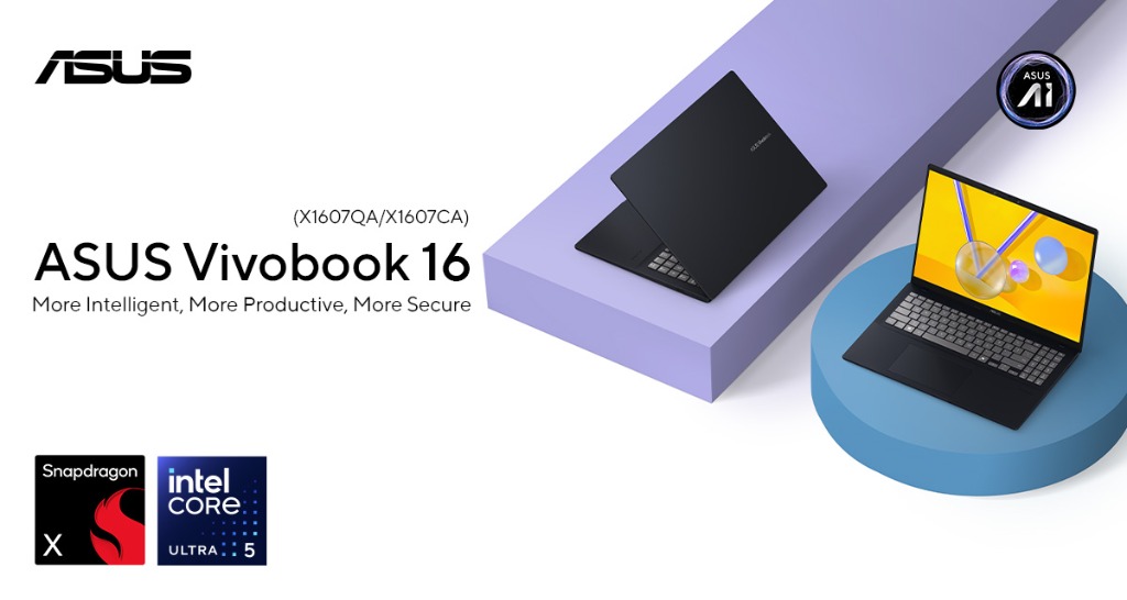 Designed for multitaskers, the Vivobook 16 (X1607QA) Copilot+ PC is powered by the Snapdragon X Series with 45 TOPS NPU, offering up to 27 hours of battery life. It will be available in stores for PHP 45,995.