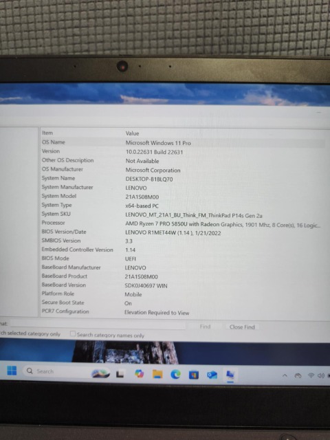AMD Ryzen 7 PRO 5850U with Radeon Graphics, 1901 Mhz, 8 Core(s), 16 Logical Processor(s)