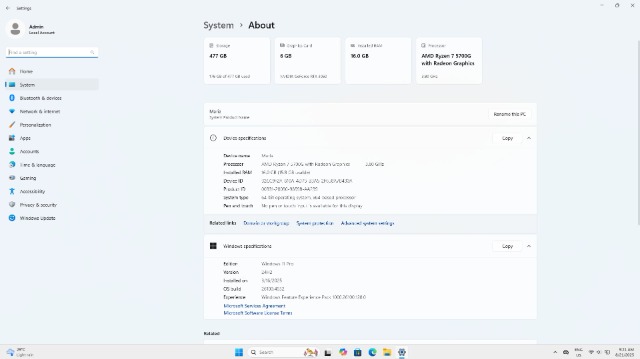 Processor: AMD Ryzen 7 5700G with Radeon Graphics (3.80 GHz)